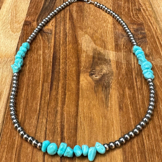 15" "Navajo Style" beads and Turquoise chip Necklace Necklace
