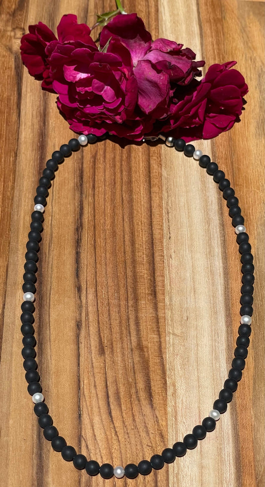 18 inch Matte Onyx and "Navajo Style" Pearl Necklace