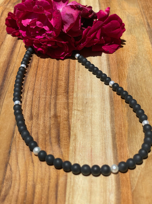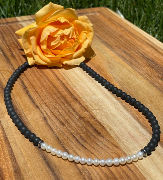 20" Matte Onyx and Freshwater Pearl Necklace