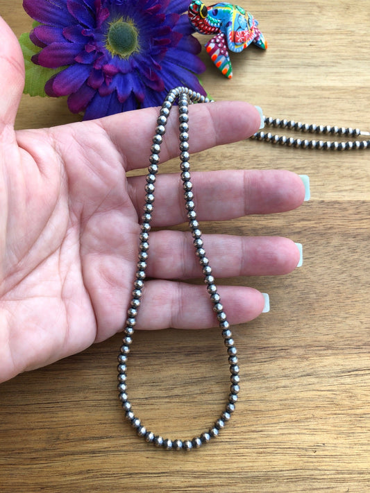 22" 4MM " Navajo Style" Sterling Pearls