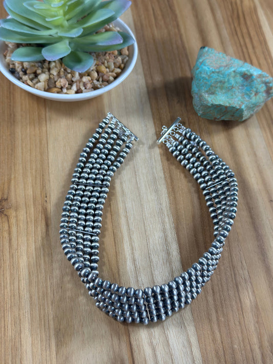 5 Strand "Navajo Style" Sterling Pearl Necklace
