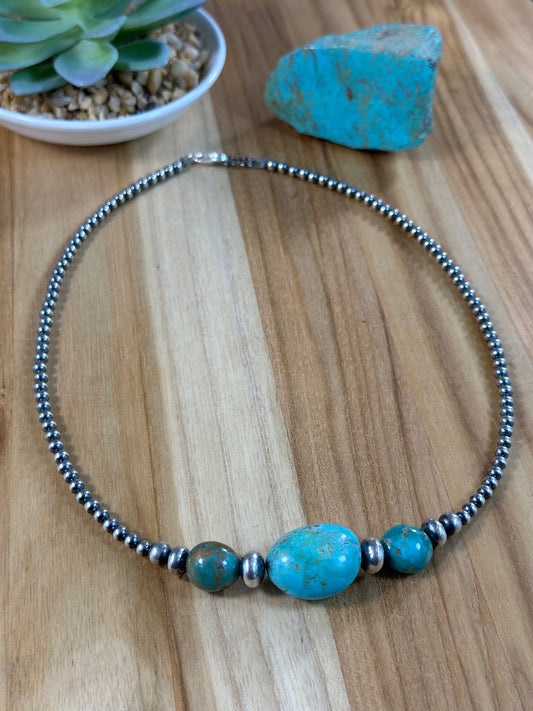 Kingman Turquoise and Navajo Pearl Necklace