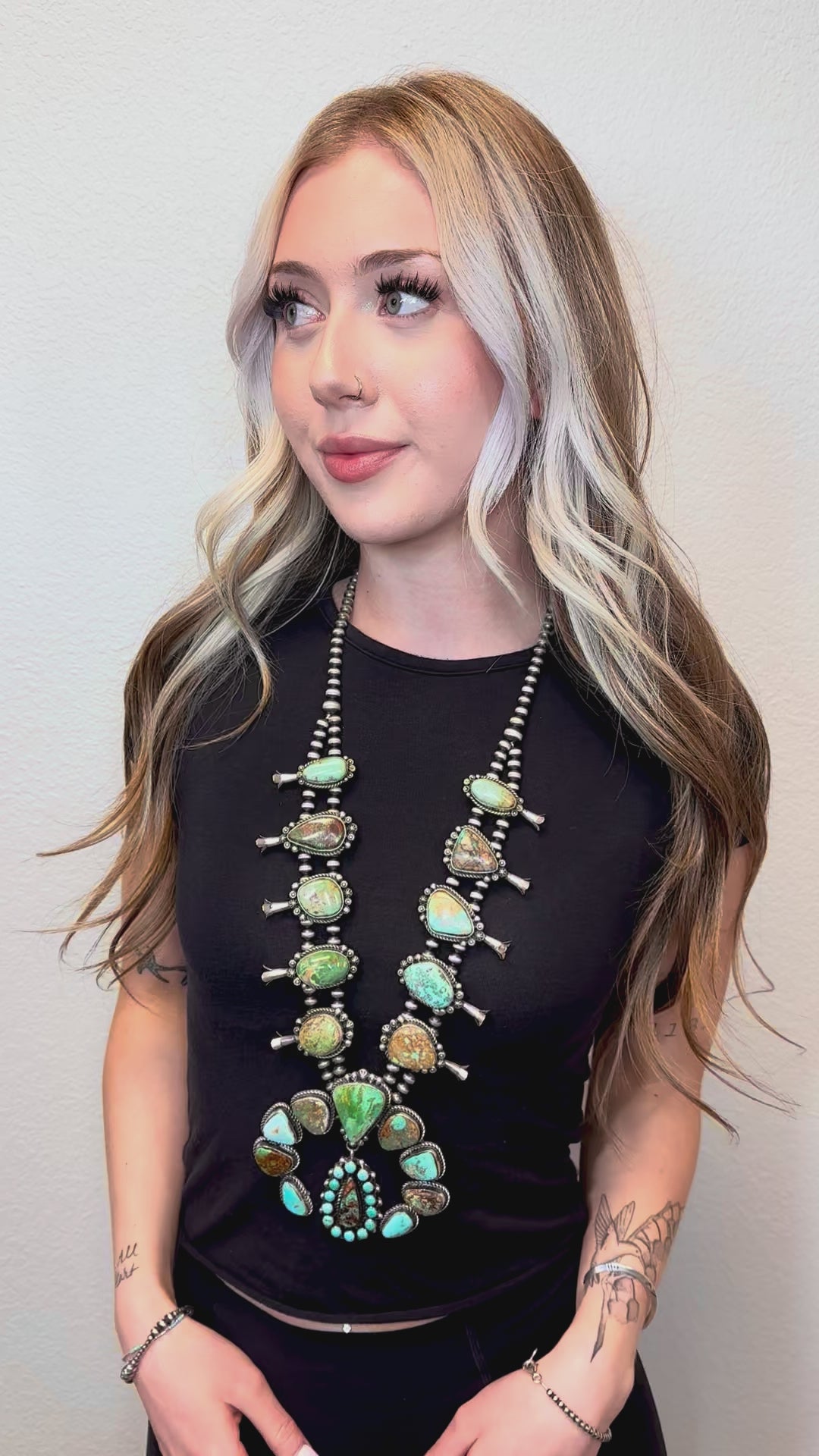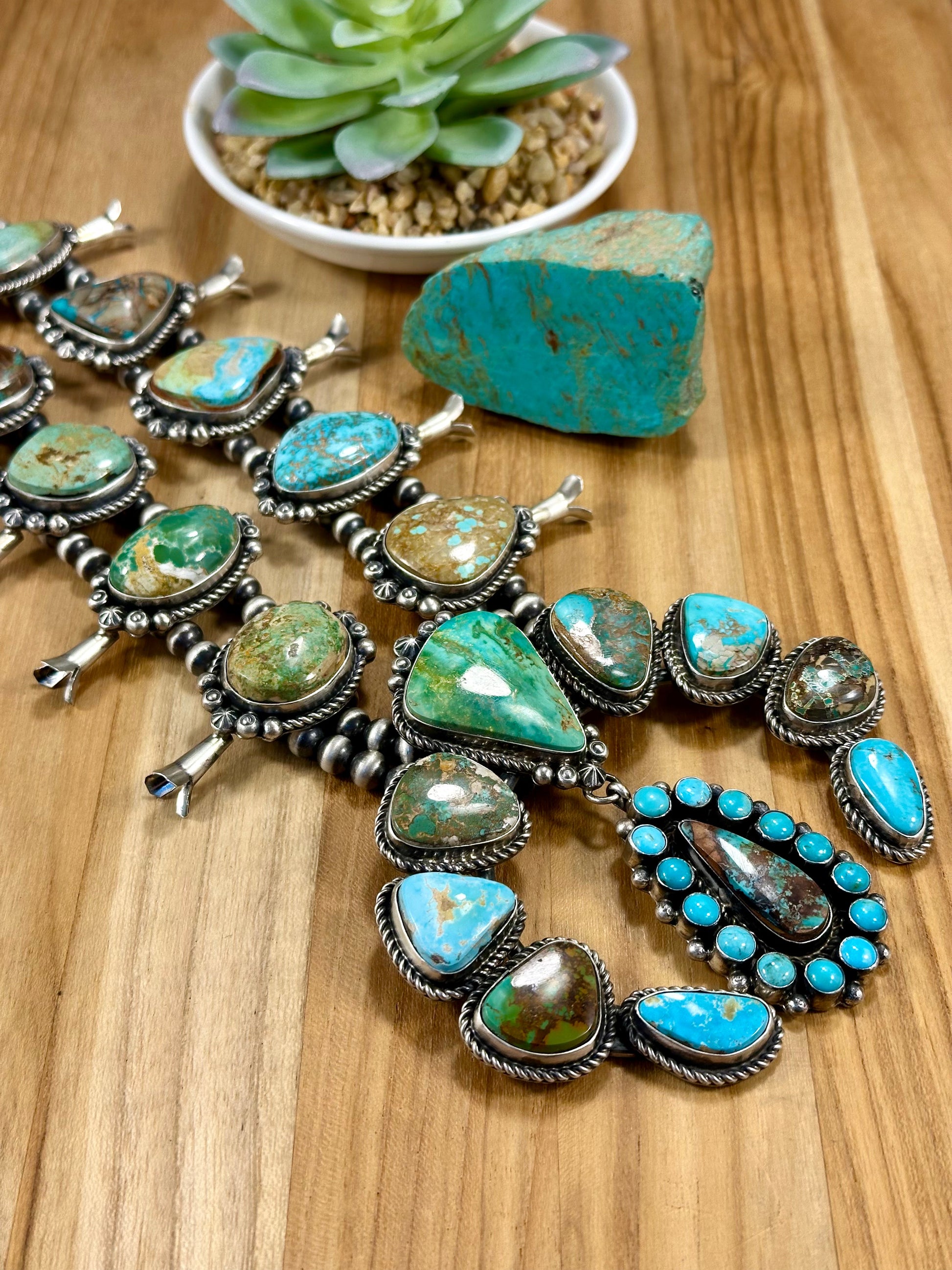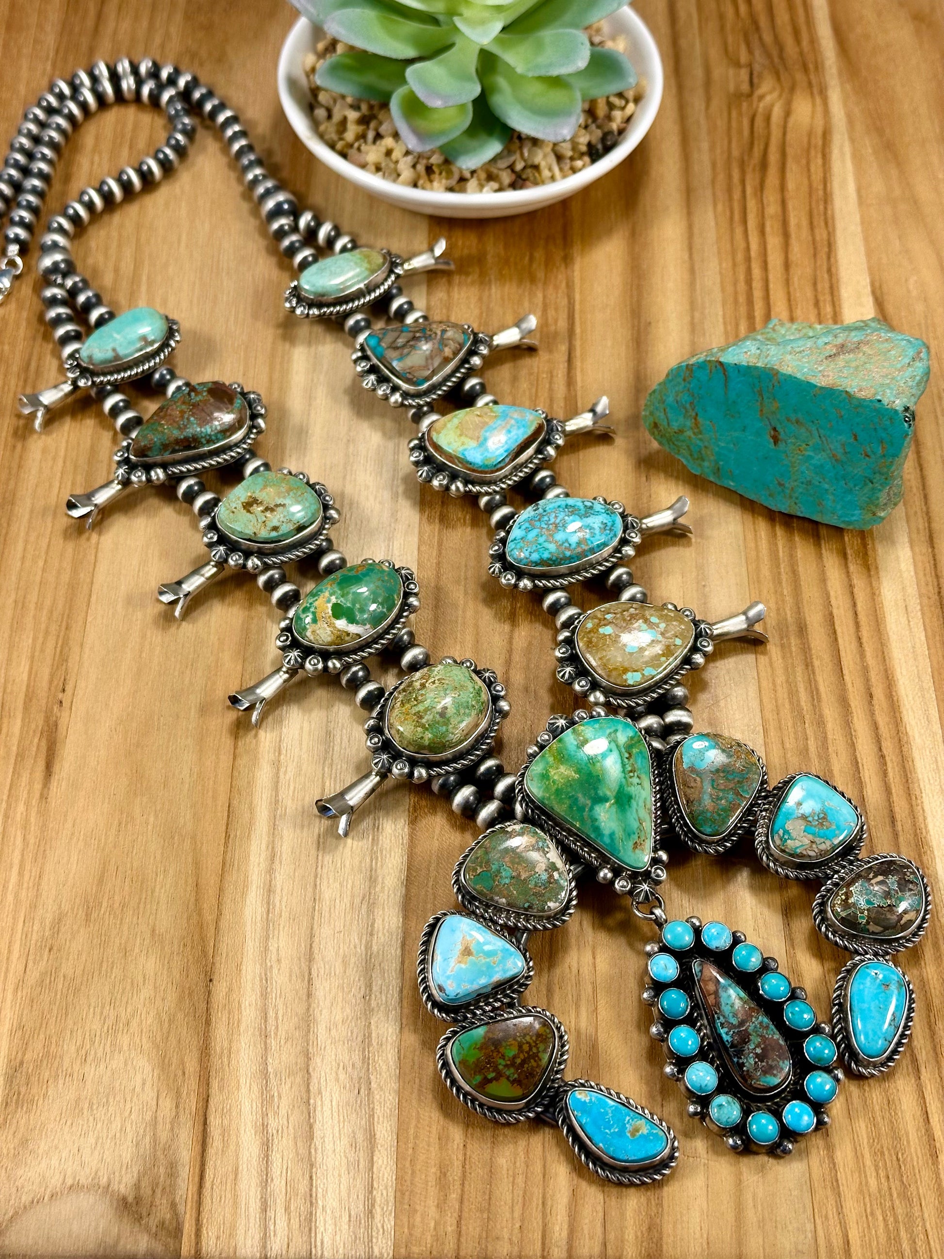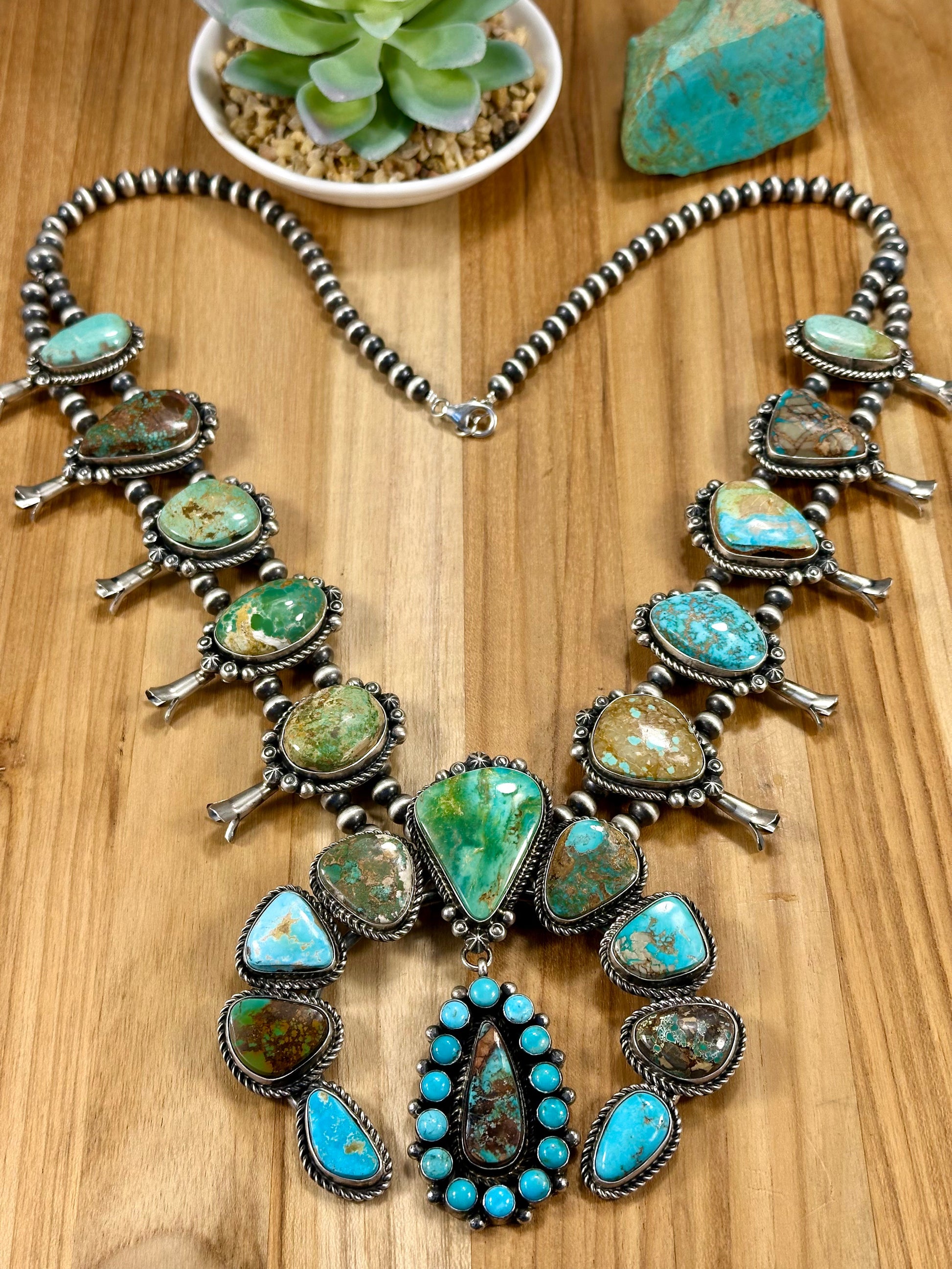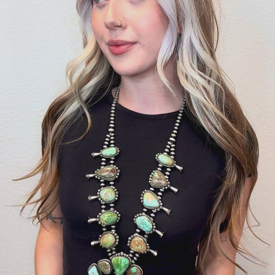 Royston Squash Blossom Sterling Silver Pearl Necklace